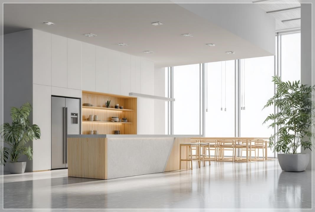 Khi bước vào một phòng bếp hiện đại được thiết kế theo phong cách này, điều đầu tiên thu hút ánh nhìn chính là sự hài hòa hoàn hảo giữa công năng và thẩm mỹ. Màu trắng tinh khôi bao phủ toàn bộ không gian, từ tủ bếp đến mặt bàn, tạo nên một bầu không khí trong lành và thoáng đãng. Sự lựa chọn màu sắc này không hề đơn đi조하지만, thực tế nó đòi hỏi sự tinh tế và am hiểu sâu sắc về cách ánh sáng tương tác với không gian.