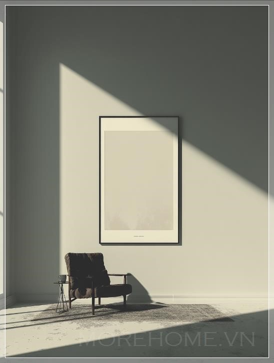 Vị trí đặt khung tranh cũng đóng vai trò quyết định trong việc tạo nên vẻ đẹp cho không gian. Theo nguyên tắc vàng của thiết kế nội thất, trung tâm của khung tranh nên được đặt ở độ cao khoảng 145-150cm từ mặt sàn, tương đương với tầm mắt của người trưởng thành. Điều này giúp việc thưởng thức tác phẩm nghệ thuật trở nên tự nhiên và thoải mái nhất.