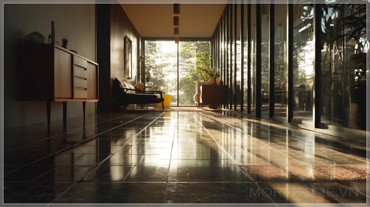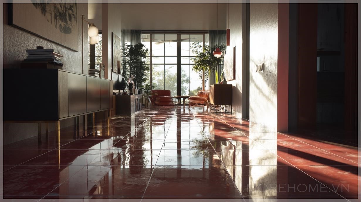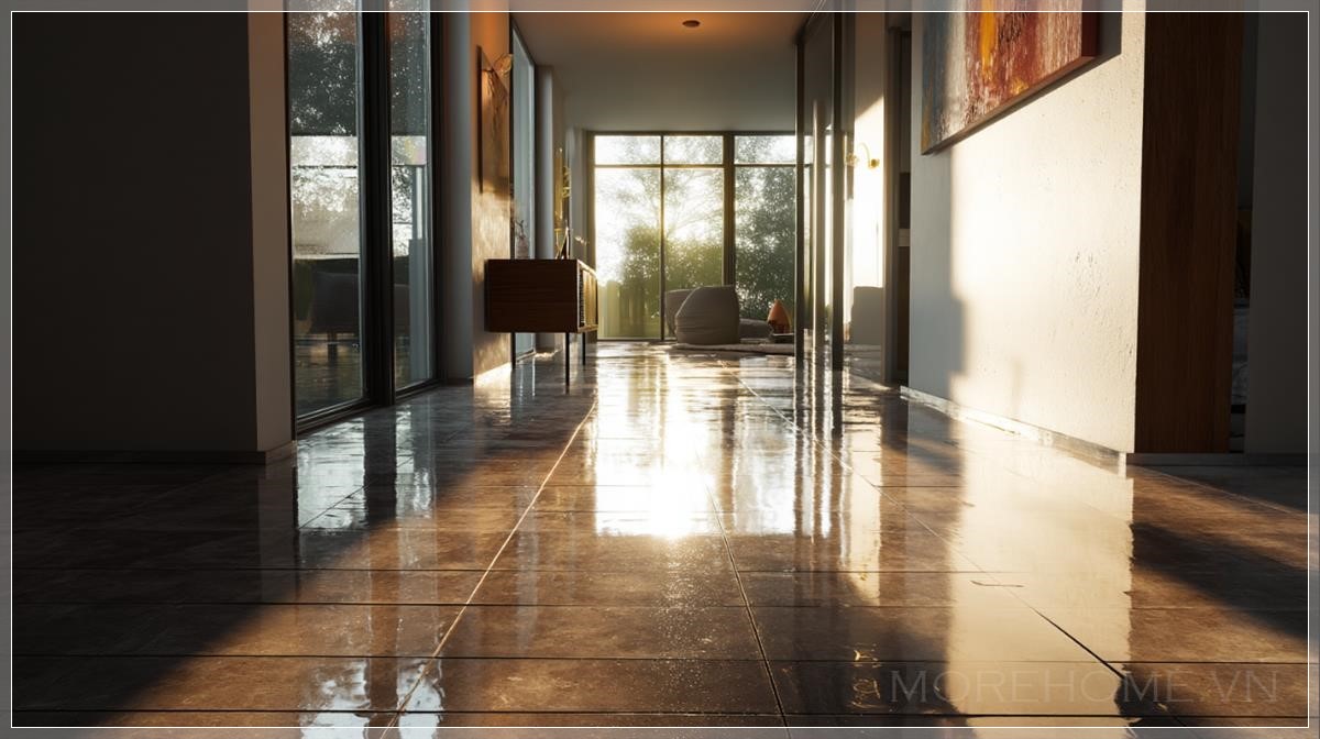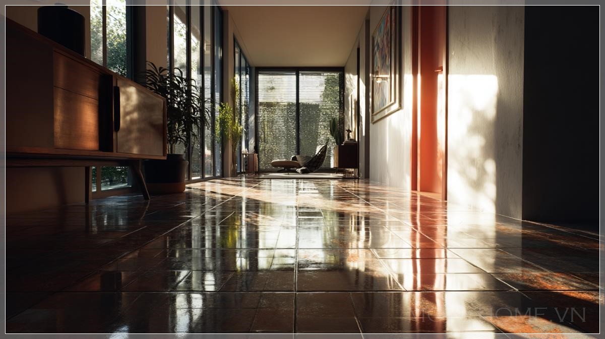 Sàn ceramic không chỉ đơn thuần là lớp phủ bề mặt, mà chính là linh hồn của toàn bộ không gian. Những viên gạch được lựa chọn kỹ lưỡng với tông màu trung tính, tạo nên một bức tranh nền hoàn hảo cho cuộc sống hiện đại. Ánh sáng tự nhiên phản chiếu nhẹ nhàng trên bề mặt bóng bẩy, mang đến cảm giác rộng rãi và thoáng đãng cho toàn bộ ngôi nhà.