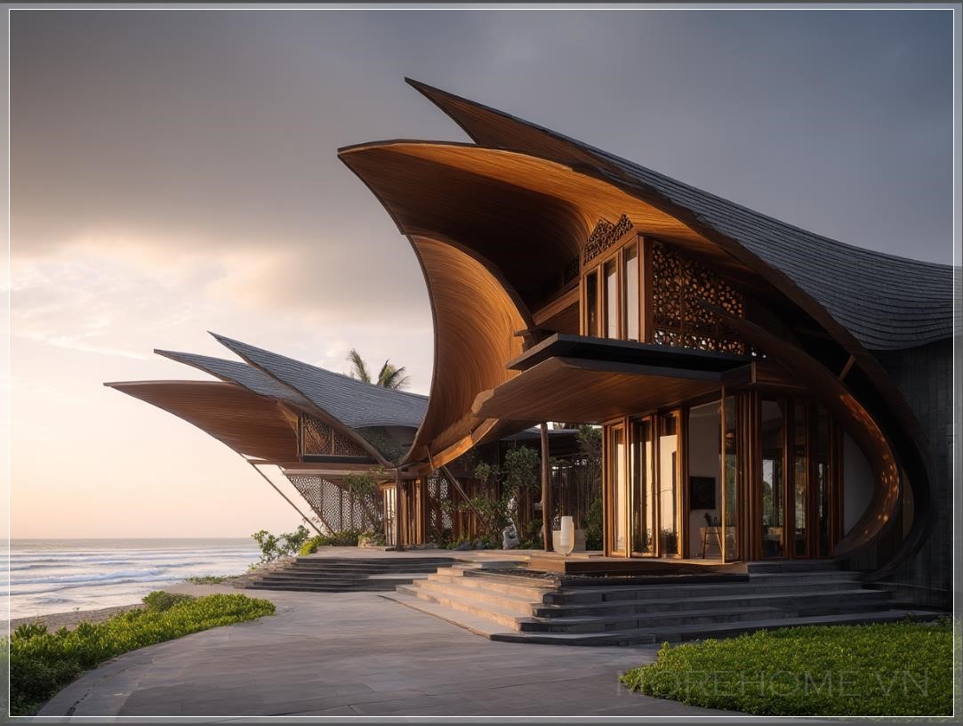 Nhờ vào sự kết hợp giữa kiến trúc hiện đại và truyền thống, những biệt thự bên bãi biển này trở thành một không gian sống lý tưởng, không chỉ mang lại cảm giác thư giãn mà còn tạo ra một kết nối sâu sắc với thiên nhiên và văn hóa Việt Nam. Đây chính là minh chứng cho sự sáng tạo không giới hạn trong thiết kế, khi các yếu tố hiện đại và truyền thống được hòa quyện một cách hoàn hảo, mang lại một không gian sống đậm chất nghệ thuật và đầy cảm hứng.