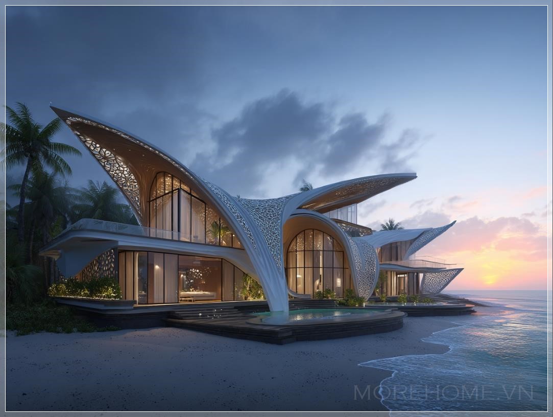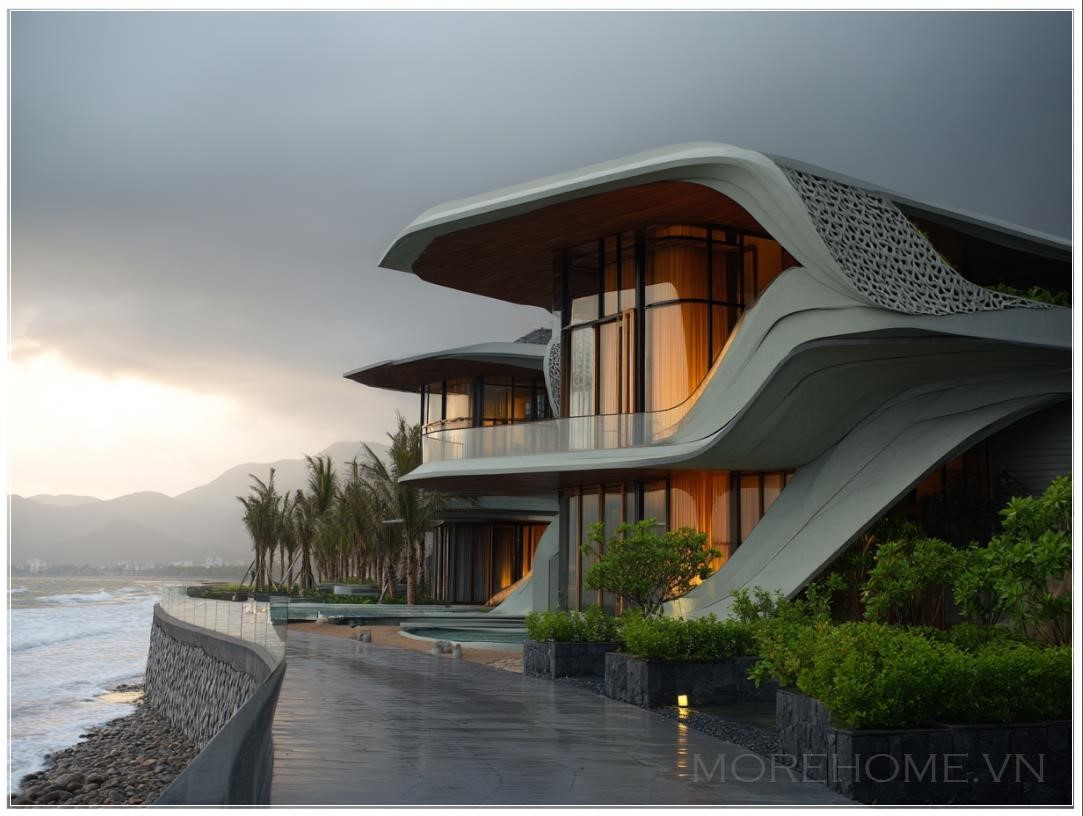 Hình dung một không gian sống không chỉ đẹp mắt mà còn hòa quyện hoàn hảo với thiên nhiên, nơi những ngôi biệt thự hiện đại và tương lai hòa quyện với những yếu tố truyền thống đầy tinh tế. Một không gian mang đậm dấu ấn của Zaha Hadid kết hợp với kiến trúc truyền thống Việt Nam, tạo ra một phong cách sống không thể lẫn vào đâu. Những biệt thự bên bờ biển này không chỉ là nơi cư trú, mà còn là biểu tượng của sự sáng tạo, năng động và tôn vinh vẻ đẹp tự nhiên, nơi mà dòng chảy của không gian và cảnh vật hòa quyện với nhau một cách hoàn hảo.