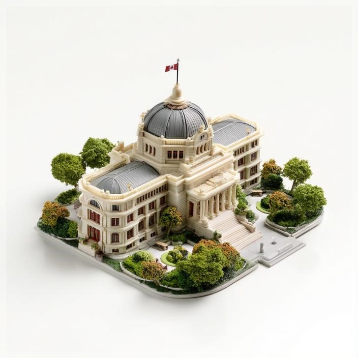 Trong thế giới kiến trúc hiện đại, mỗi thiết kế đều mang đến những trải nghiệm độc đáo và đầy cảm hứng. Một trong những thiết kế đáng chú ý là mô hình tòa nhà lập pháp mini với mái vòm đặc trưng, cột cờ uy nghi và khuôn viên xung quanh. Được xây dựng theo phong cách hiện đại, mô hình này không chỉ là biểu tượng của quyền lực và sự trang trọng, mà còn thể hiện sự hòa hợp giữa kiến trúc và thiên nhiên.