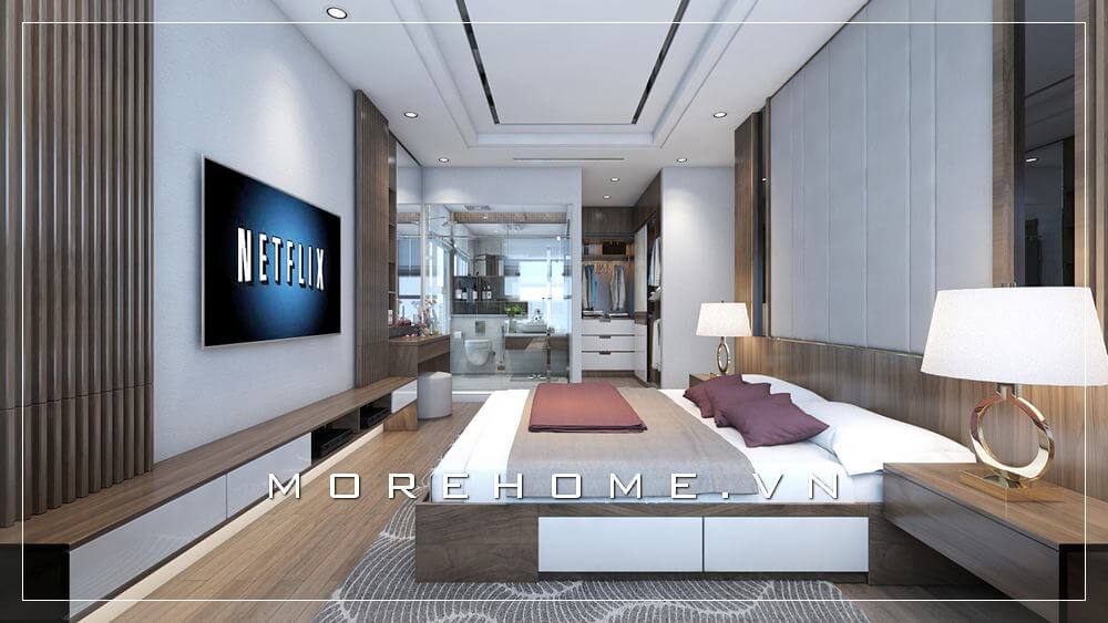 Lựa chọn giường ngủ có ngăn kéo phía dưới giúp cho gia chủ có nhiều không gian để lưu trữ đồ dùng, giúp căn phòng trở nên ngăn nắp, gọn gàng hơn