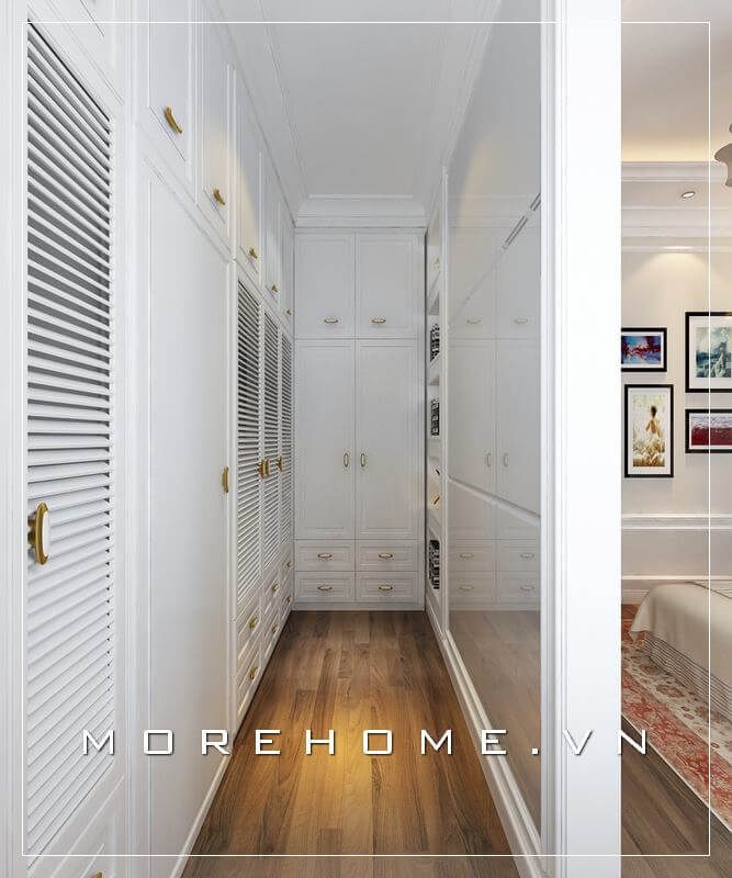 Tủ áo cánh mở hiện đại giúp tạo nên một không gian rộng rãi và thoáng đãng cho phòng ngủ.