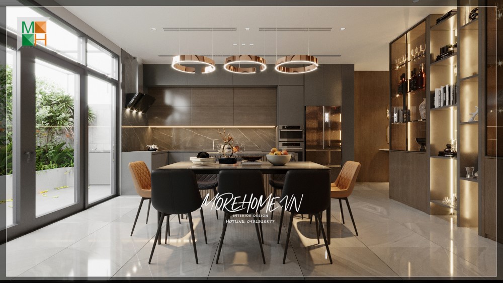 Không gian trong phòng ăn thoải mái, giúp cho chúng ta có thể thưởng thức các món ăn ngon và trò chuyện với những người thân yêu nhất.